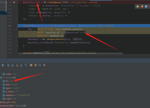 此处$question[‘id’]参数来源于前一个查询结果,可以考虑二次注入,不过此处因为id参数为提交问卷时系统自动生成,所以无法利用了。