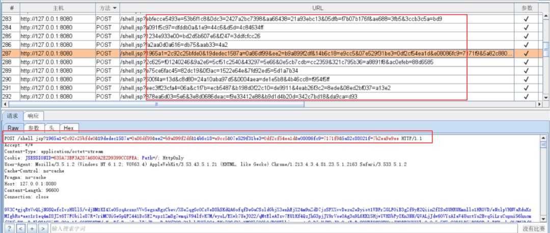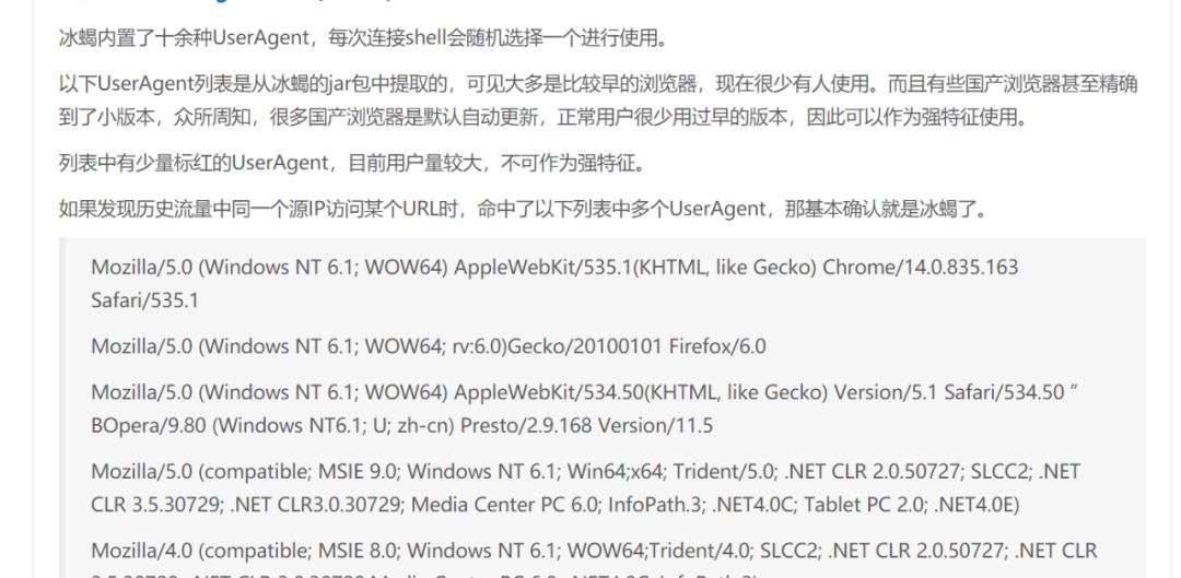 如果同一个url或者源IP在数秒内内同时命中了这两种规则,那么可以非常肯定的确认是冰蝎了。注意,此处是同一个URL或者源IP,而不是同一个TCP会话,密钥传递和加密通讯未必是同一个TCP会话(源端口会变化)。