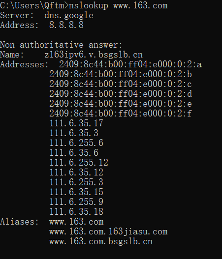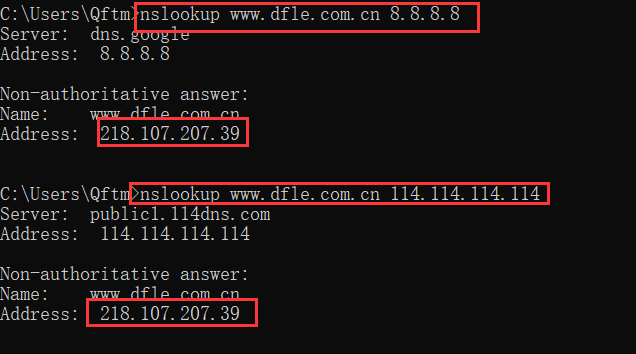 C:\Users\Qftm>nslookup www.dfle.com.cn 8.8.8.8
