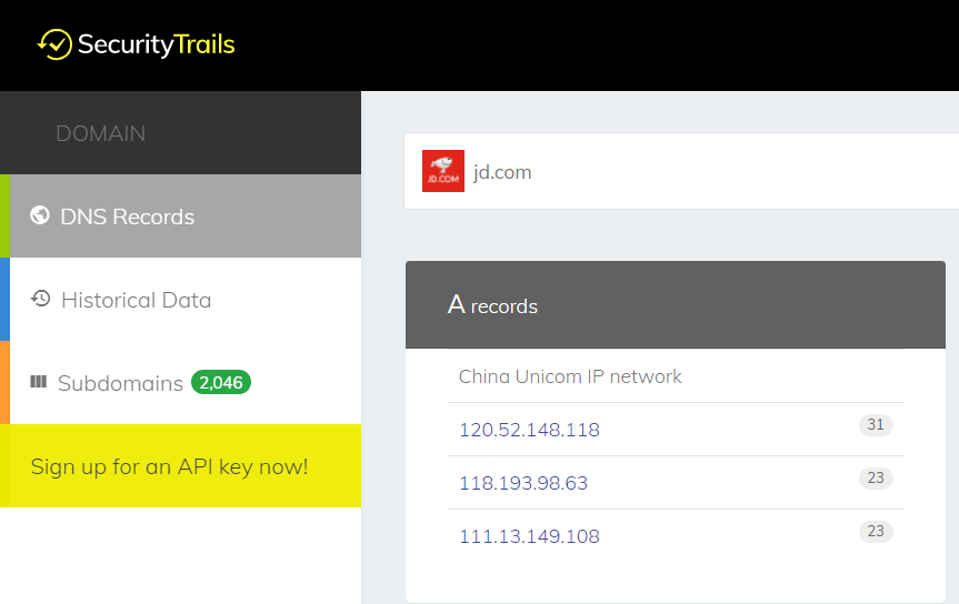 一般网站从部署开始到使用cdn都有一个过程,周期如果较长的话 则可以通过这类历史解析记录查询等方式获取源站ip,查看IP与域名绑定的历史记录,可能会存在使用CDN前的记录。