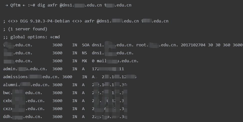 dig @dns.xxx.edu.cn axfr xxx.edu.cn