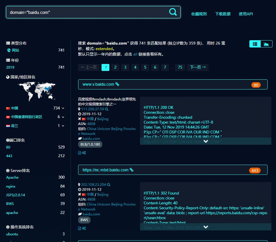 利用这些网络空间资产搜索引擎来搜索暴露在外的端口信息