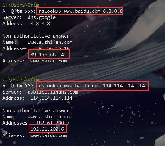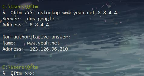 λ Qftm >>>: nslookup www.baidu.com 8.8.8.8