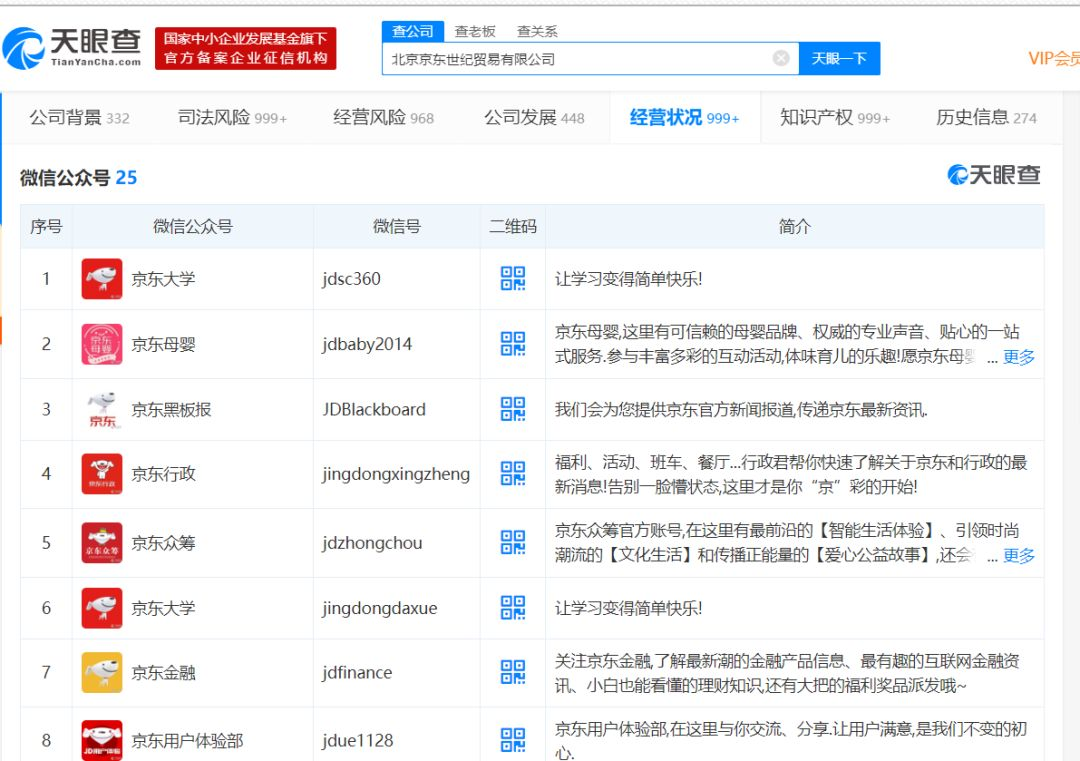 微信公众号&微博 天眼查根据前面获取的企业名称可以获取目标企业的微信公众号、微博、备案站点、软件著作权等信息。