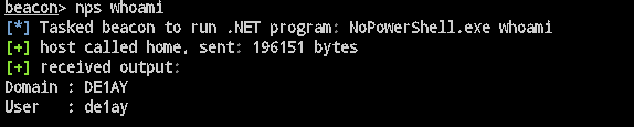 NoPowerShell是用C#实现的工具,它支持执行类似PowerShell的命令,同时对任何PowerShell日志记录机制都不可见。同时也提供了CS下的cna脚本。