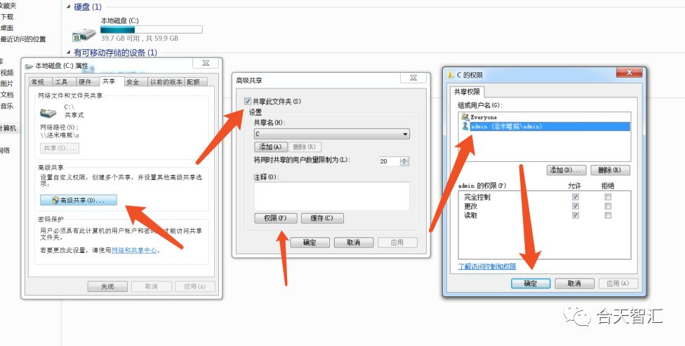 开启共享文件夹,并添加访问用户的权限,使其能够远程访问。