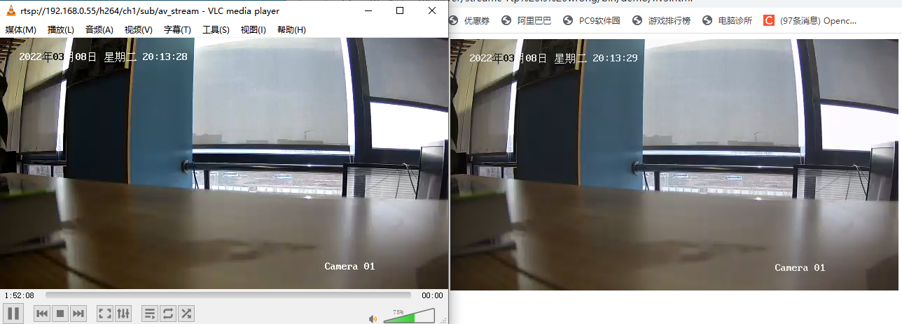 如下图所示,明显vlc和ws连接得时间显然是不一样,ws连接时间很长,显示得时间竟然和vlc 相差20秒,这就是时间戳得问题了,所以要进一步处理该问题 如图,修正以后,时间戳趋于正常,flv播放比vlc rtsp 相差无几,快1秒左右,应该还有余地,可以在进行优化。