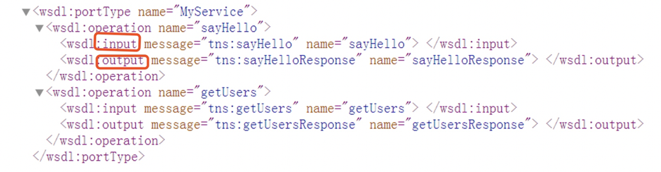 通信消息的数据结构的抽象类型化定义,使用Types所定义的类型来定义整个消息的数据结构。 WebService中每个方法包含两部分:
