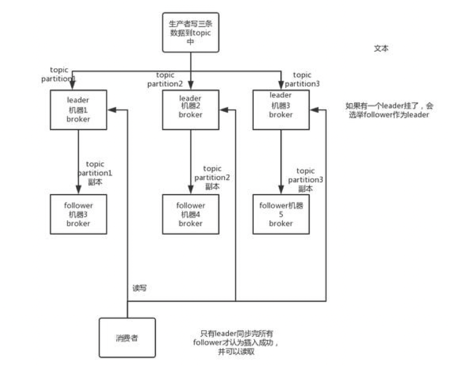 2️⃣. kafka每个partition都有一个leader和多个follower,当leader挂了,follower会自动选举出来一个leader,这样就保证了mq的健壮性;