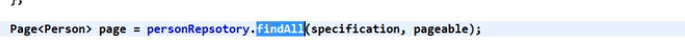 可以看到调用的是findAll方法,里边需要传两个参数。一个是查询条件,一个是分页信息。