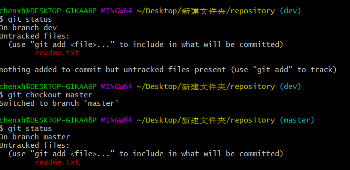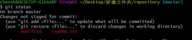 chenxh@DESKTOP-G1KAA8P MINGW64 ~/Desktop/新建文件夹/repository (master)