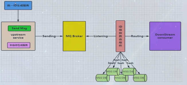 1.需要一个统一ID生成服务,为了保证可靠性,上游服务也要有个本地ID生成服务,然后发送消息给Broker