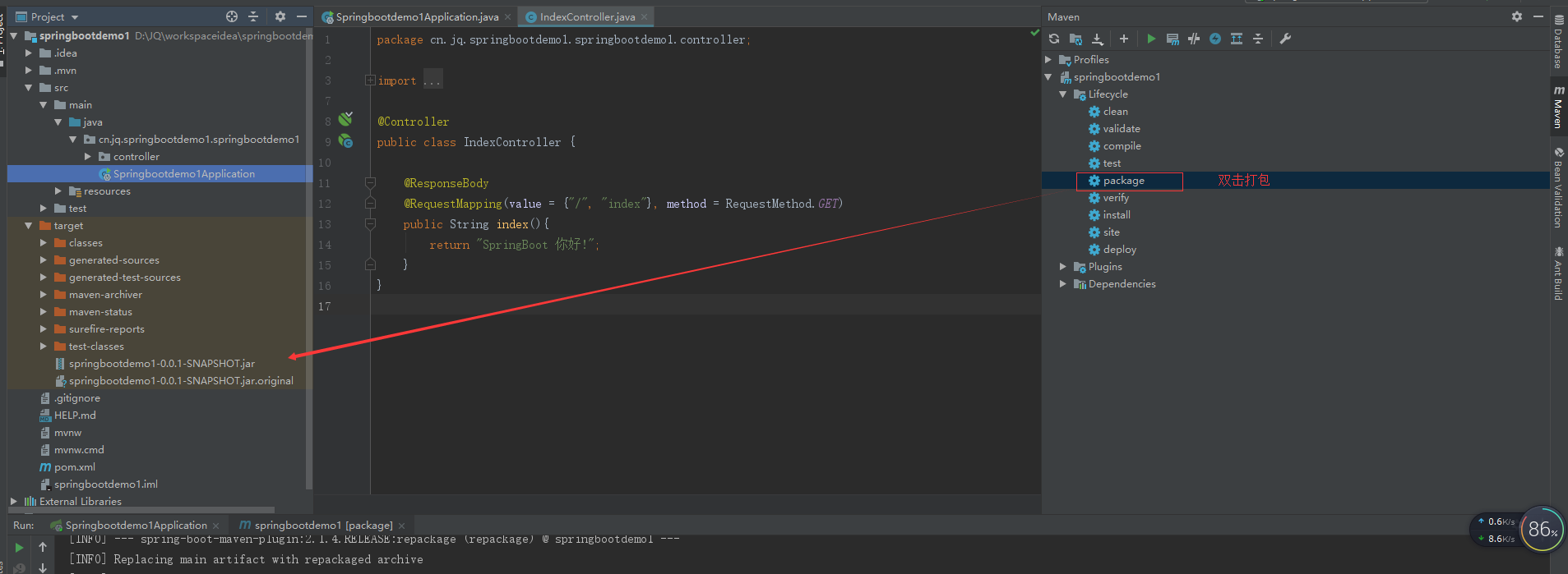 3、打包发布测试,因为pom.xml中引入了maven的插件,可以直接用maven打包