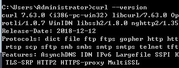 打开cmd 命令提示符,运行命令( curl –version )检查curl 版本号
