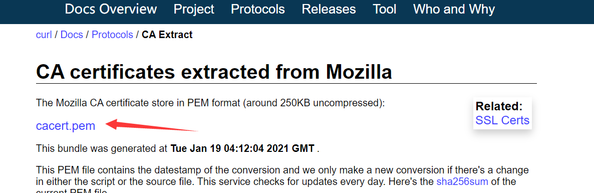 网址:https://curl.se/docs/caextract.html 点击下载放在这里